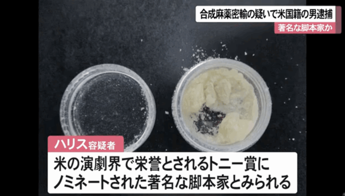 Jeremy Harris, a 36-year-old American national who describes himself as a screenwriter and actor, has been arrested on suspicion of violating the Narcotics Control Act.